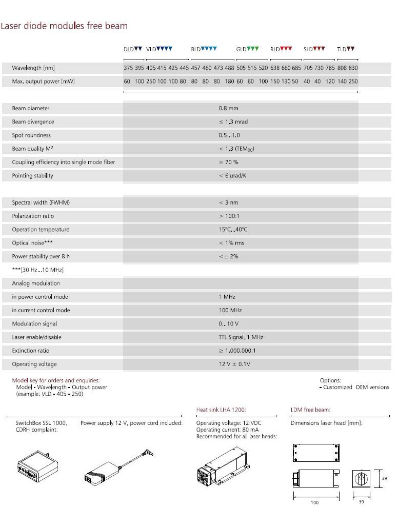 375nm....830nm,多種波長自由空間半導體激光器