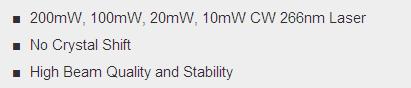 266nm連續激光器(200mW / 100mw / 20mW / 10mW)